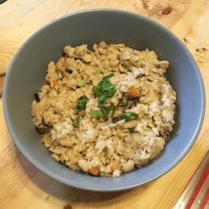 Since we used left over beef broth, we found that it can be too flavorful with shiitake mushrooms so it’s nice to cut it with something mild and refreshing. You can also squeeze some lemon on it before eating.