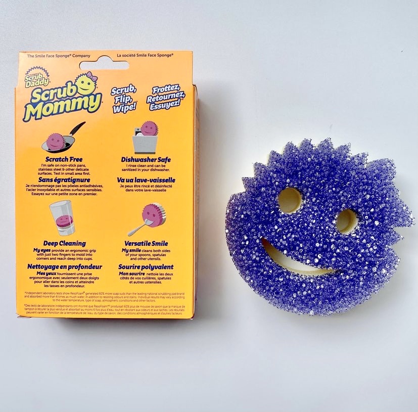 Scrub Mommy. Scrub mommy is a duo of the original Scrub Daddy and ResoFoam®. The latter is an innovation that makes it 6x more absorbent, produce 60% more soap suds, all the while being odor and stain-resistant.