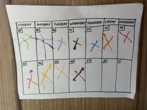 Make a visual calendar so you will not forget what day it is! Also, it was a little activity that Mark and Tikoy did every morning.